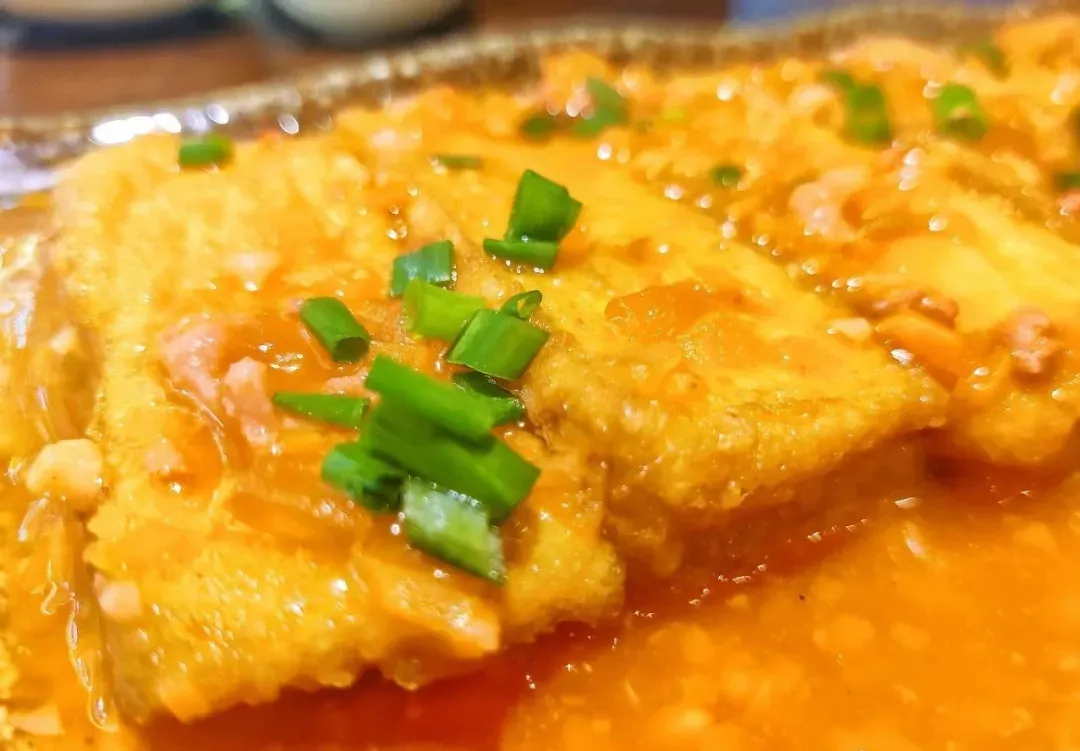 这条街上的老街坊们习惯坐在椅子上慢慢等待着自己的好友到来,再一起吃着店内的美食,一起唠着家常。要说这家店的美食独特之处,少不了最经典的那家自磨豆腐,是不少蒲庙人的童年味道。豆腐外皮略酥,里面软中带着微甜,外面还有一层不算酸的红米甜酒汁,入味又清爽。