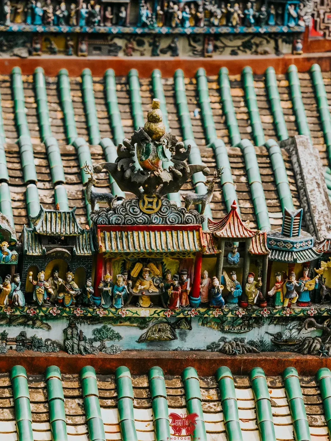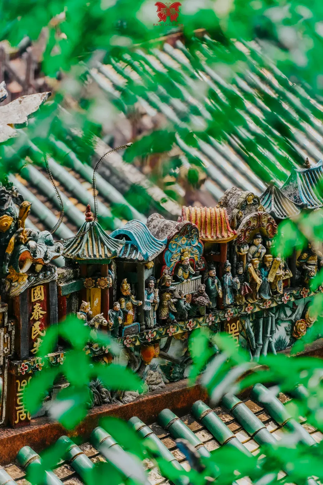 五圣宫屋顶上的浮雕和泥塑极其精致,在历经无数风吹雨打、烈日暴晒后,颜色依然鲜艳,看起来一尘不染,着实为五圣宫平添了几分神秘。