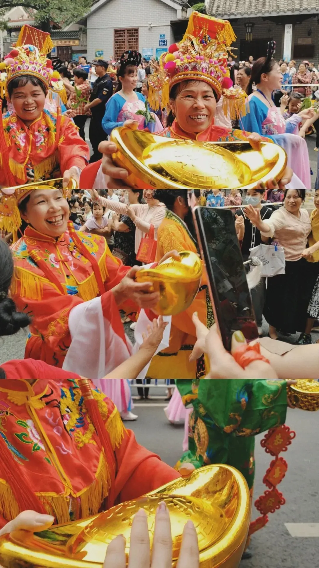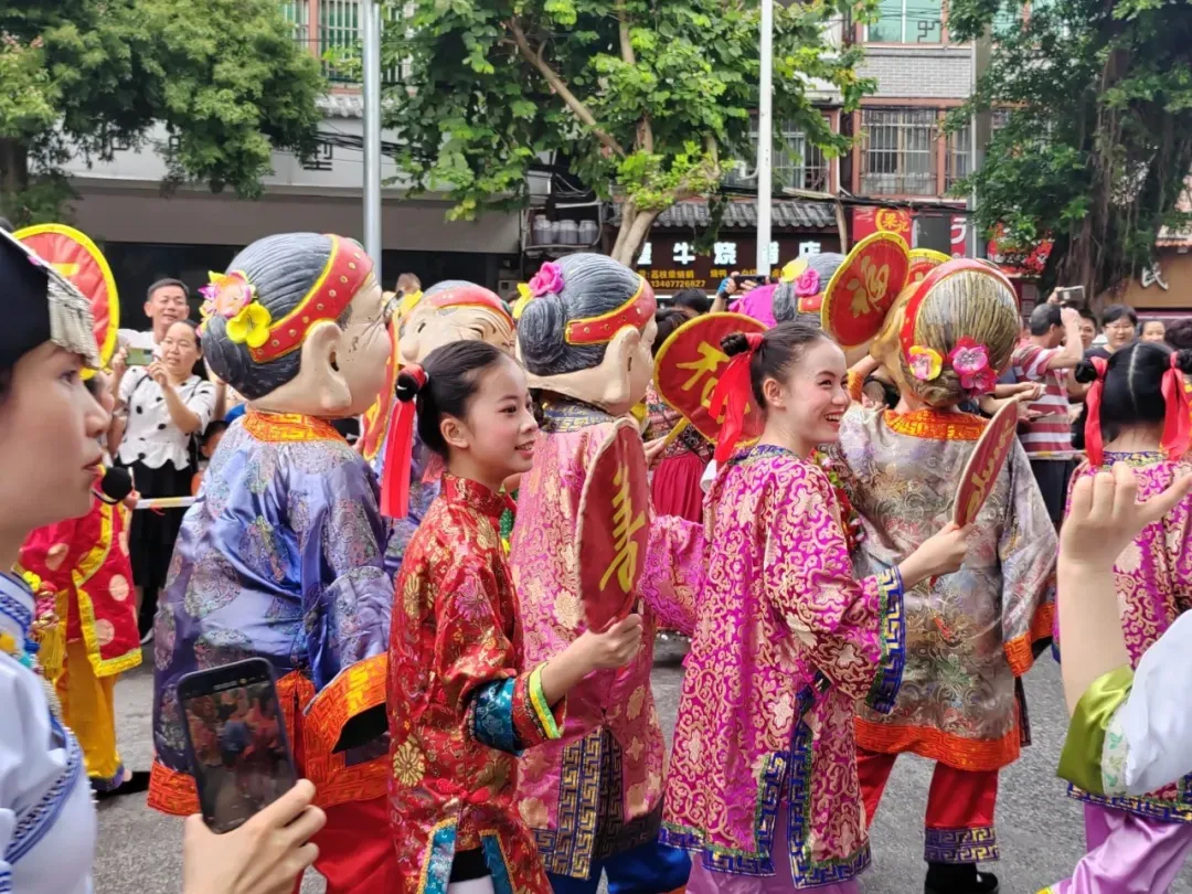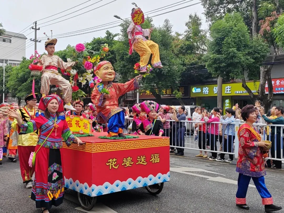 街道两旁,彩旗飘扬,除了传统的花婆派粥仪式,还有吃生榨米粉大赛、民俗巡游等活动,人们身着节日的盛装,脸上洋溢着喜悦的笑容,轻盈地穿梭在人群中,为节日增添了无限生机。