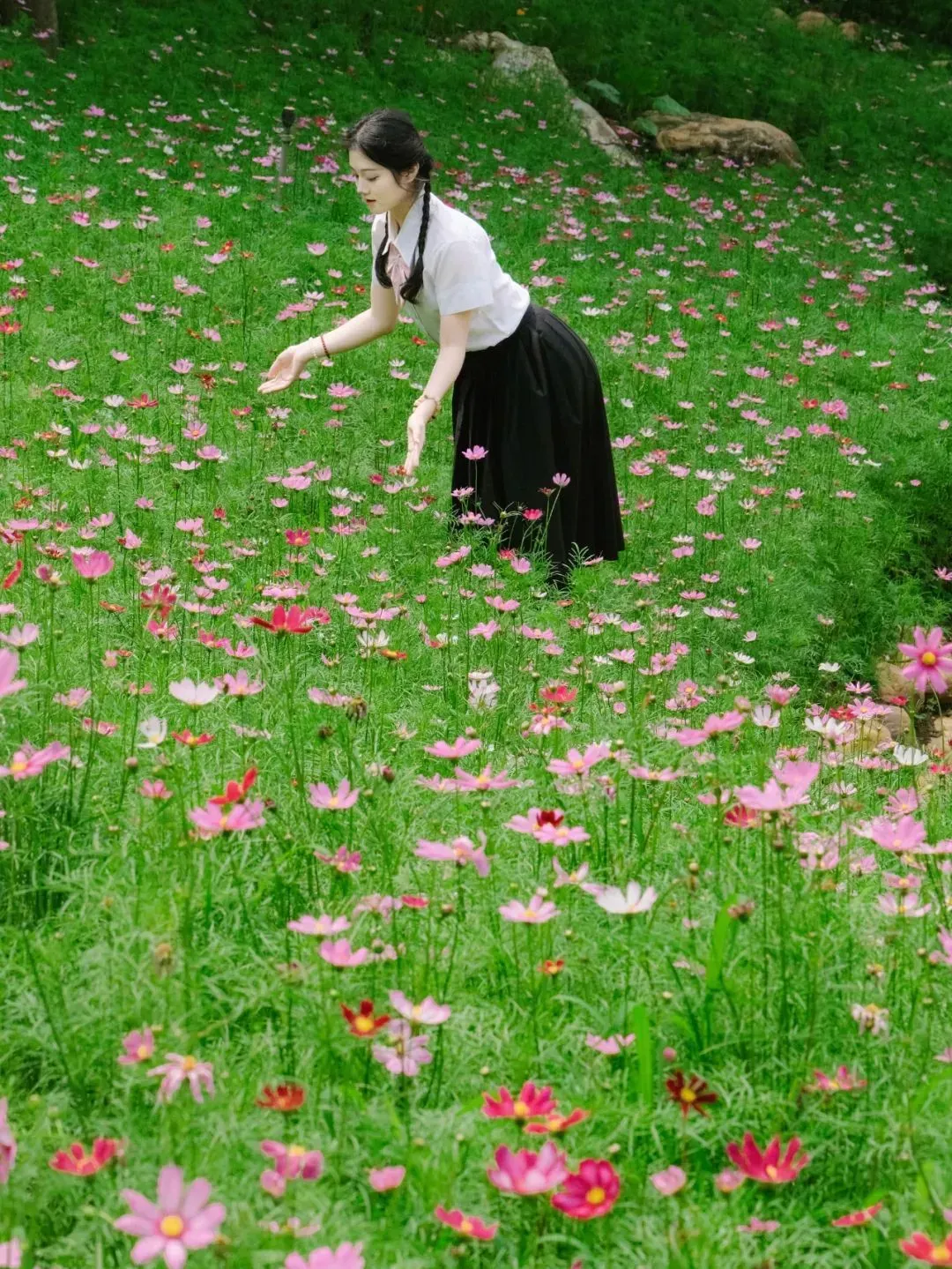 夏日,紫薇花园的波斯菊如期绽放,走进这片缤纷的花海中,尽情拍照打卡,留下属于这个夏天最美好的回忆。▲园博园波斯菊花海 图/南宁园博园
