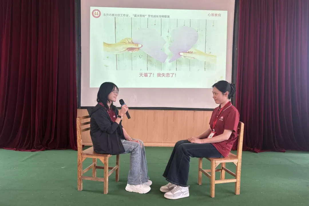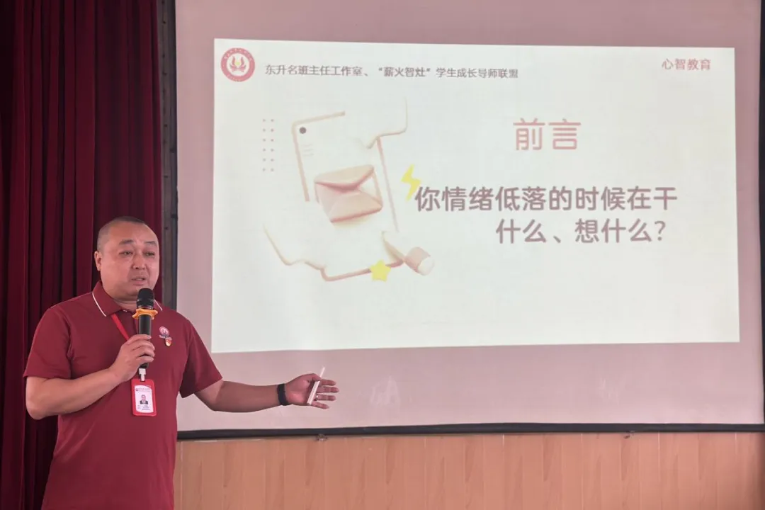 培训第一阶段聚焦教师心理健康引导能力提升专题,由校长助理兼教务科科长、东升名班主任工作室以及“薪火智灶”学生成长导师联盟成员朱海刚主讲。朱助理立足职业院校学生身心发展规律,系统融入心智家园教育平台专业理念,围绕情绪疏导核心方法展开深入讲解,精准拆解“描述事件—表达感受—内心想法—引导转念”实操公式,重点讲授倾听共情、有效沟通、正向引导等实用技能。为强化实操效果,朱助理现场组织互动演练,邀请一位女教师扮演情绪异常学生,另一位教师现场开展心理疏导与沟通交流,通过沉浸式模拟、点对点点评,让参训教师直观掌握情绪疏导实操要点,切实提升心理育人实战能力。