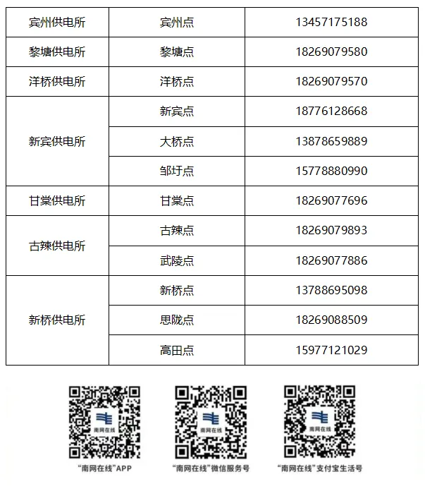 如您遇到停电、用电故障或有用电咨询需求,欢迎拨打宾阳供电局24小时服务热线: