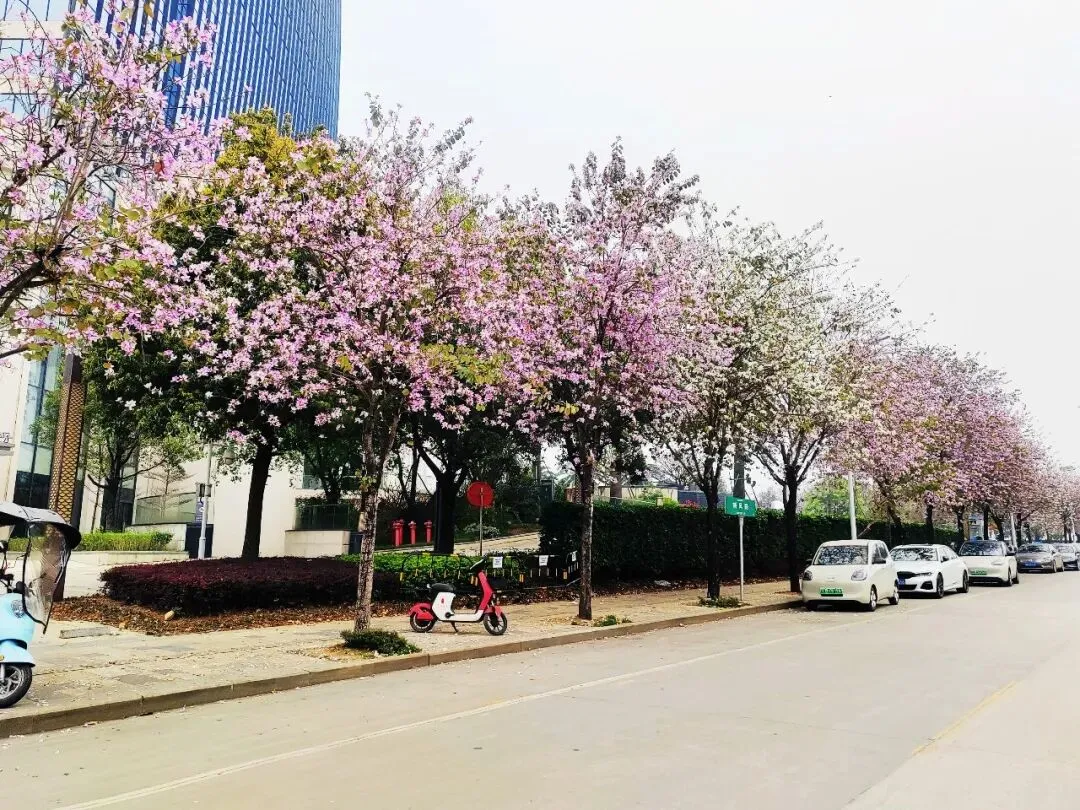 宾阳凤凰湖公园旁羊蹄甲盛放!满城繁花醉春光