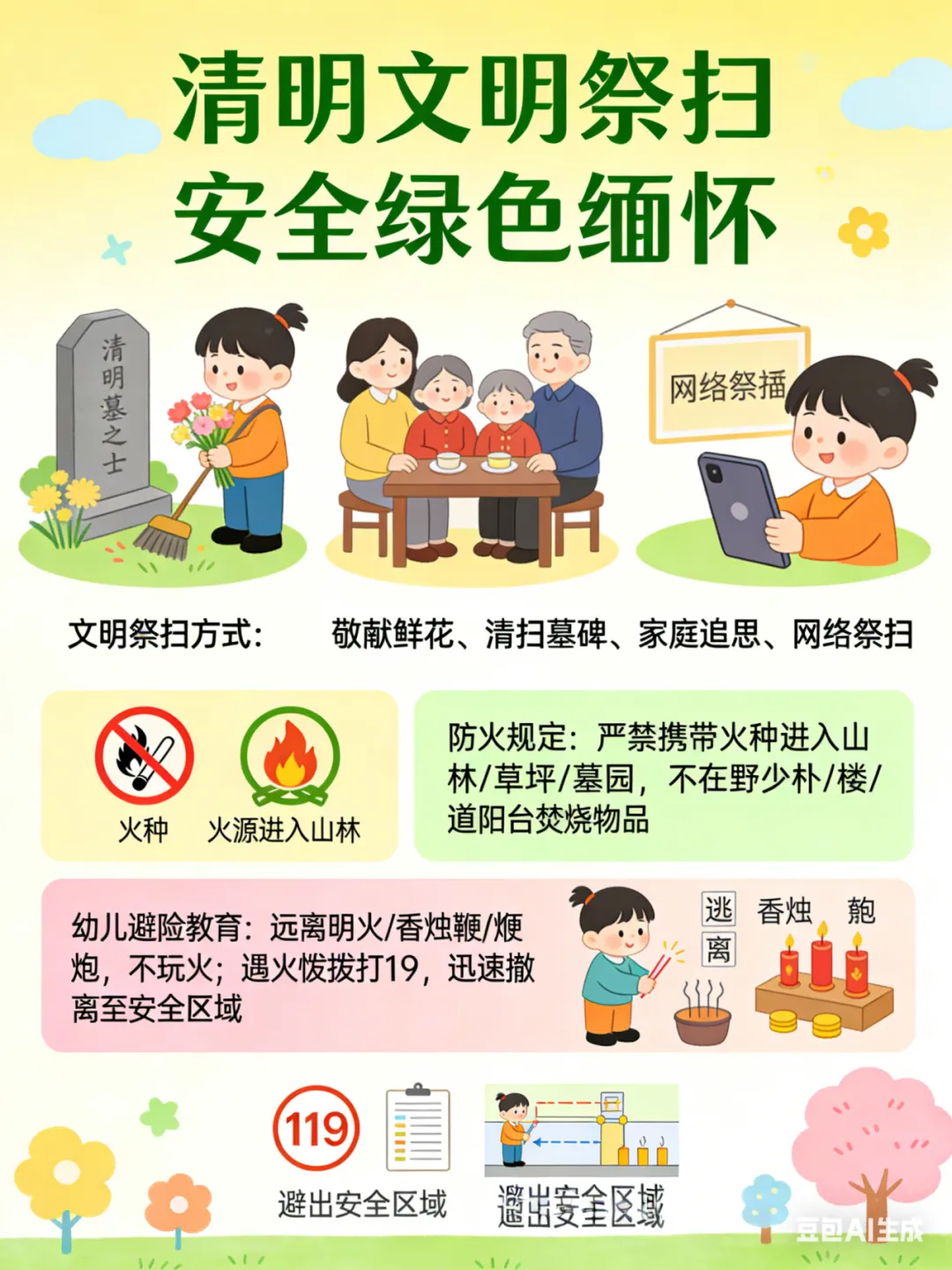 孩子的安全是家园共同的心愿。让我们携手同心,筑牢安全防线,共同守护孩子平安健康成长。衷心祝愿您和家人度过一个平安、文明、温馨的清明假期!