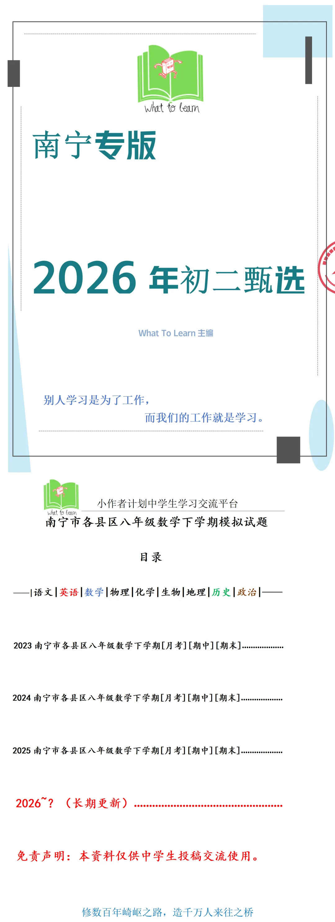南宁各县区八年级数学下学期月考期中期末试题及答案