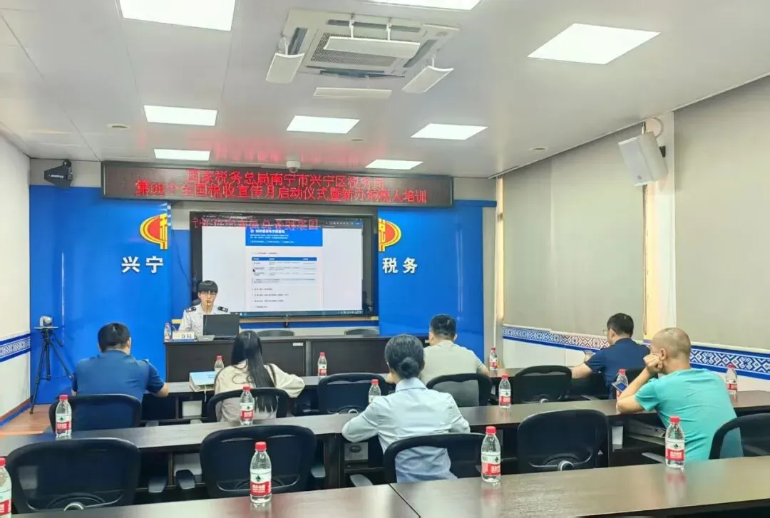 国家税务总局南宁市兴宁区税务局以“税收·法治·公平”为主题,开展了第35个全国税收宣传月启动仪式暨新办纳税人培训。聚焦新办纳税人普遍关心的纳税申报、发票开具等业务办理问题,兴宁区税务局组织辖区内40多家新办纳税人到纳税人学堂“面对面”开展辅导培训,详细为纳税人讲解申报注意事项、发票如何开具,以及合规享受税费政策等内容,并现场辅导纳税人线上实操办理业务,引导新办纳税人合规经营,走好开业第一步。(唐金键 摄)