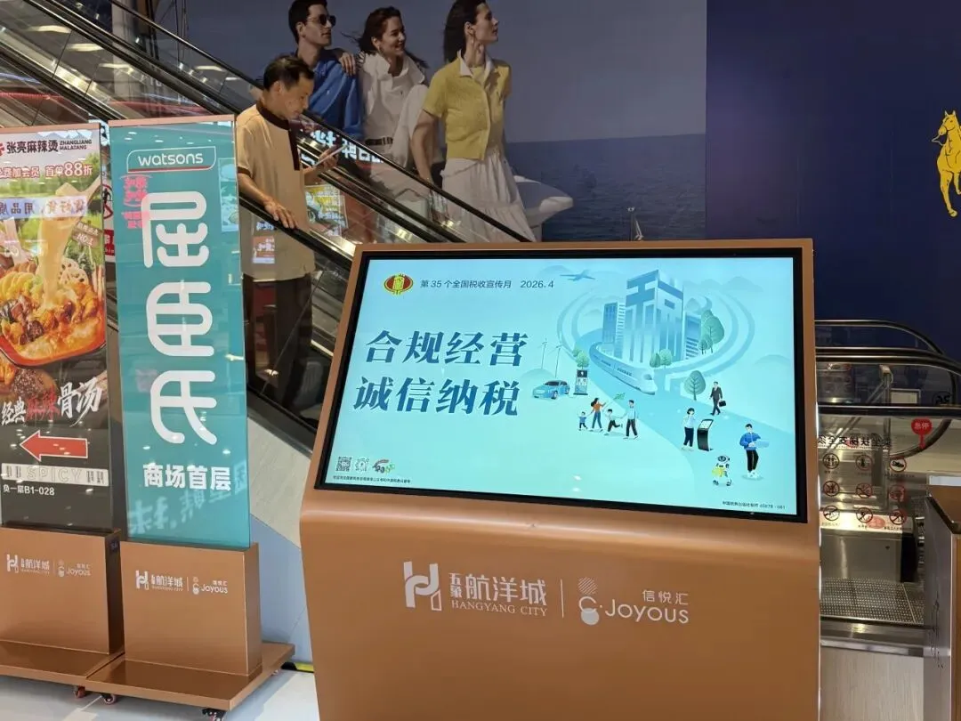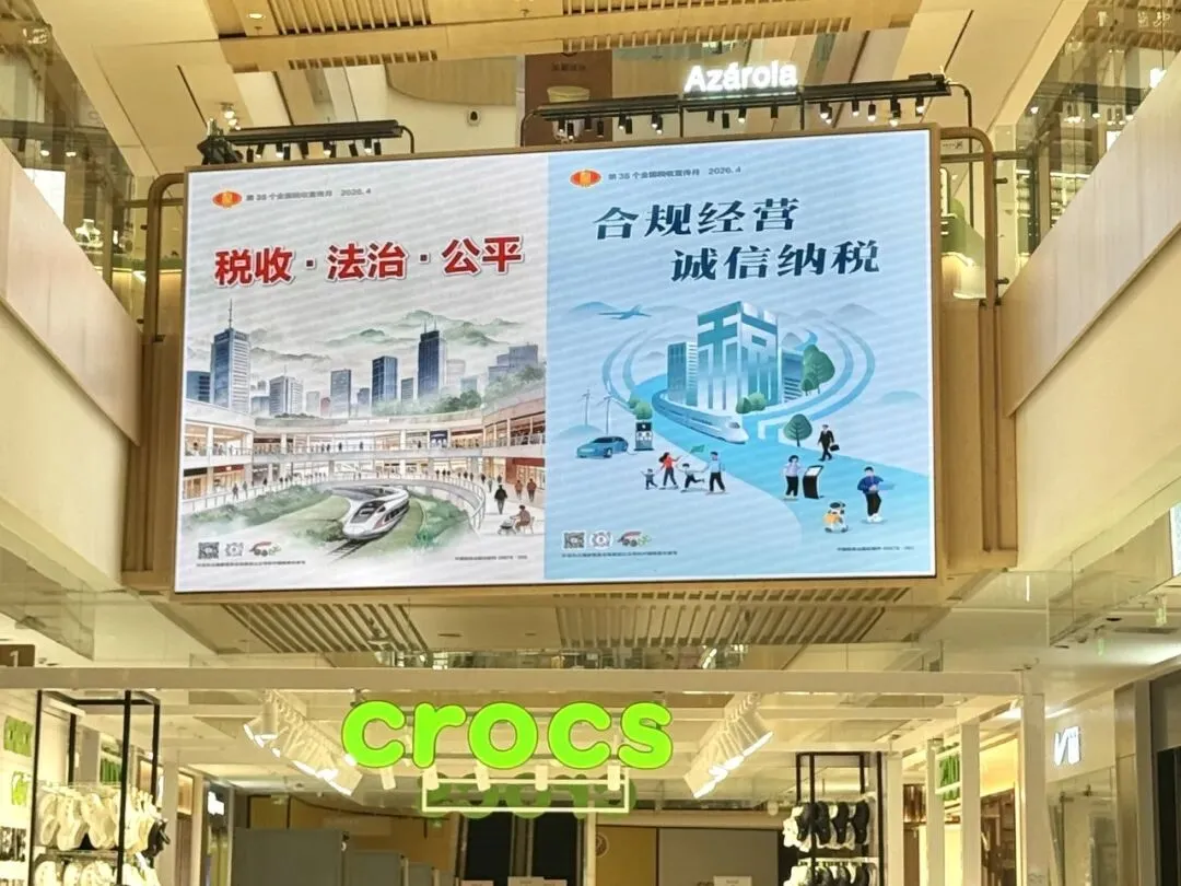 在第 35 个全国税收宣传月期间,国家税务总局南宁市良庆区税务局围绕“税收·法治·公平”税收宣传月主题,借助辖区内大型商超电子屏展播税收宣传海报,进一步营造浓厚的税收宣传氛围,提升税收普法宣传的社会关注度和影响力。