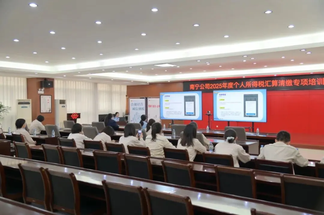 国家税务总局横州市税务局紧扣“税收·法治·公平”主题,走进国能南宁发电有限公司,面向财务人员及员工代表开展个人所得税汇算清缴培训,并同步宣传“有奖发票”活动。通过手把手辅导、面对面答疑,引导企业员工依法诚信办理申报,同时鼓励消费者主动索取发票,携手共筑诚信纳税的良好环境。