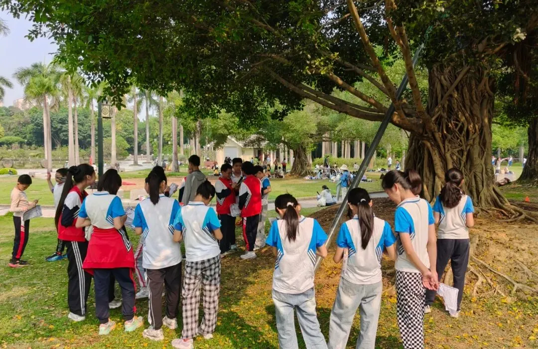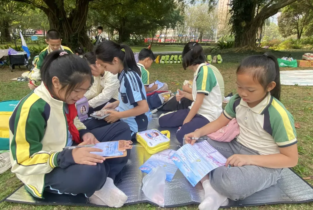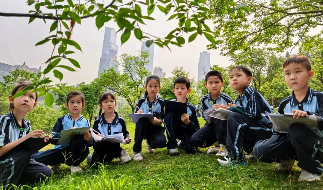 五年级学生在凤岭儿童公园“画春天、写春诗”。孩子们席地而坐,手持画笔,将眼前的春日美景细细描摹,蓝天白云、繁花绿树都跃然纸上;同时结合画作,即兴创作春日小诗,做到诗画相融,用艺术形式表达对春天的喜爱,实现美育与文学素养的同步提升。