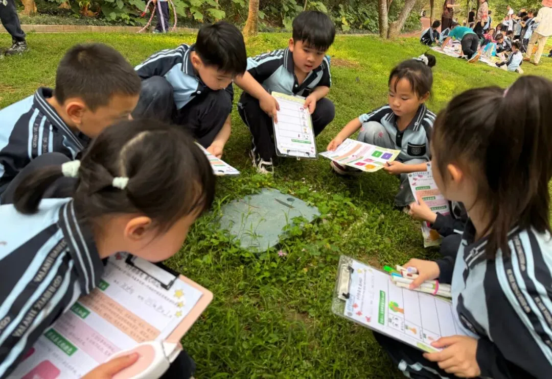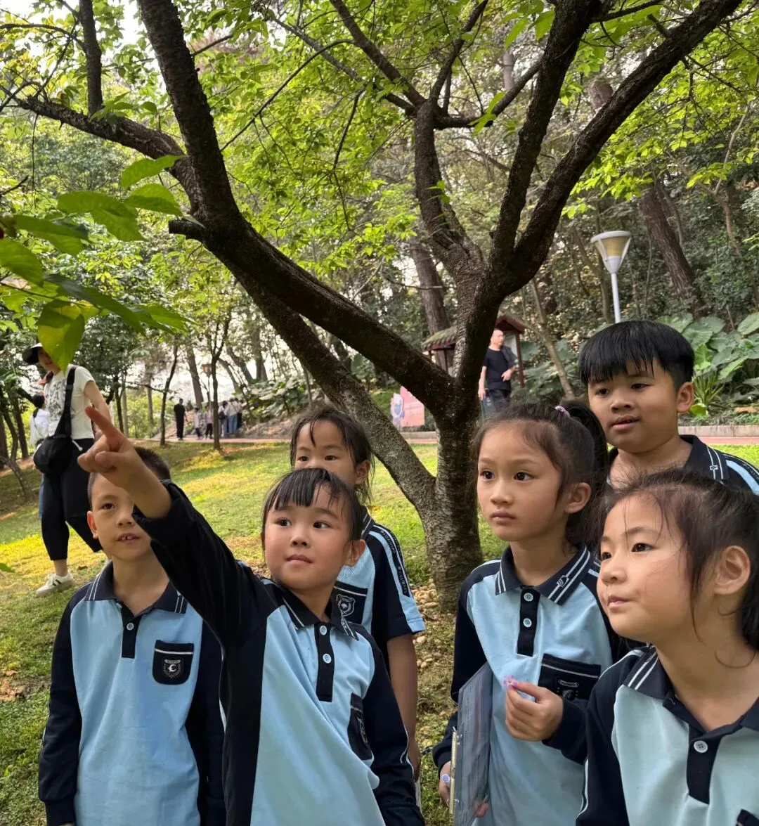 石门森林公园里,一年级孩子们睁大眼睛寻觅枝头的新绿、花朵的艳红,用小手触摸柔软的枝叶,用鼻子轻嗅花草的芬芳,用耳朵聆听鸟儿的欢鸣,通过视觉、触觉、嗅觉、听觉、味觉全方位感受春天的生机与美好,在自然中感知季节变化,留住春日的烂漫瞬间。