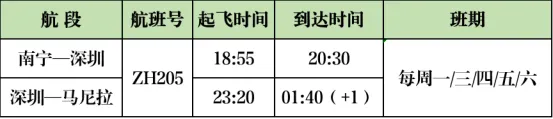 2026年3月30日,随着南宁至马尼拉国际客运航线开通,南宁机场再次实现恢复东盟十国首都城市国际客运航线。该航班由深圳航空运营,计划每周执行5班,具体航班时刻如下: