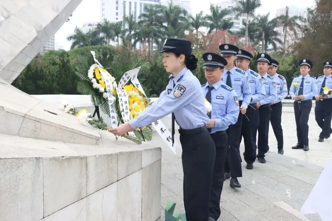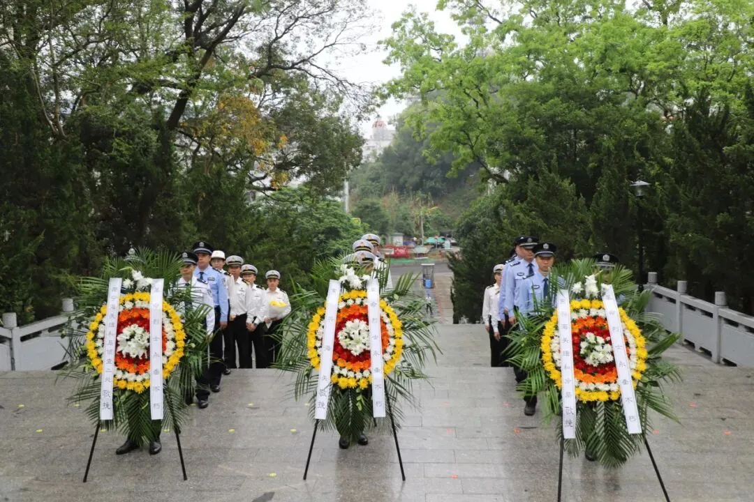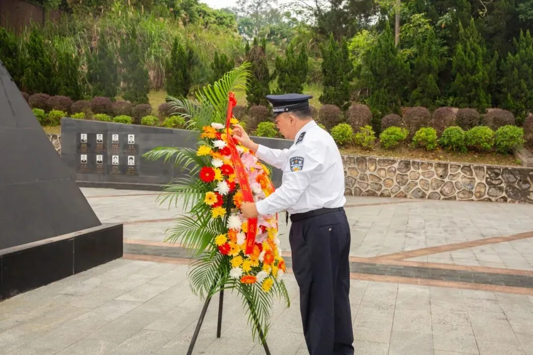 为深切缅怀公安英烈不朽功绩,弘扬公安英烈精神,南宁海关缉私局于清明节期间前往广西公安烈士纪念园组织开展了“致敬公安英烈”纪念活动,重温英烈们的崇高精神与英勇事迹,激励全体民警坚定理想信念、忠诚履职担当。