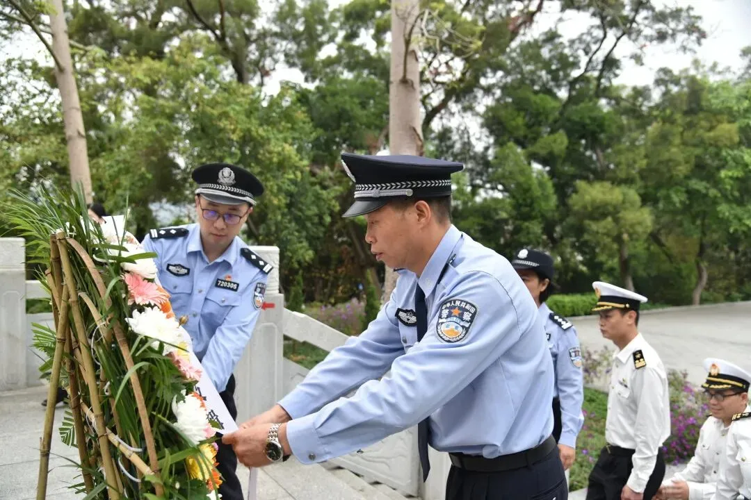 南宁海关缉私局党组副书记、政委张兵带领机关民警代表整齐列队,向为国家安宁、人民幸福英勇献身的公安英烈低头默哀、敬献鲜花。