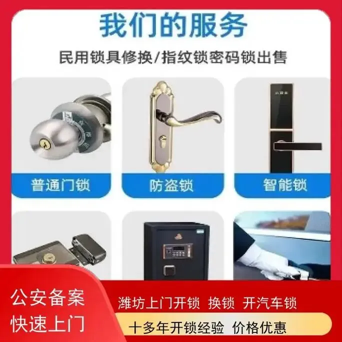 - 入户门、卧室门、卫生间门开锁、换锁、修锁