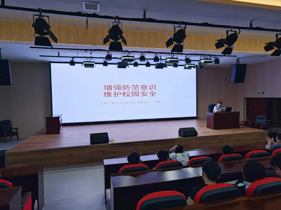 青秀区五合派出所警官以《青春与法同行,守护美好年华》为题,为同学们带来一堂生动的法治课。他用“法律就像体育比赛中的规则”这样贴近学生生活的例子,深入浅出地解释了法律的本质,并重点介绍了新修订的《治安管理处罚法》中与未成年人密切相关的重要条款。