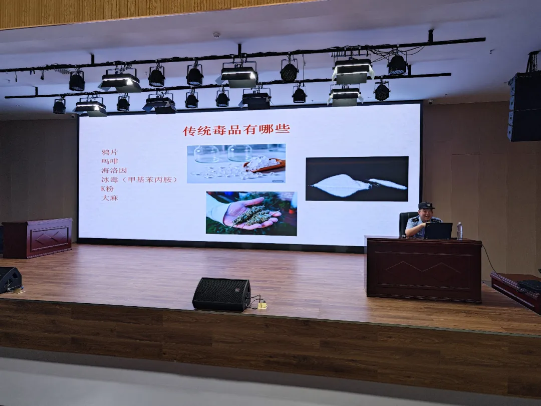 讲座还进行了禁毒知识宣传教育。通过剖析真实案例,警官深刻揭示了毒品对个人、家庭及社会的严重危害,并郑重告诫:“一次好奇,可能毁掉一生。对毒品,永远不要有第一次。”