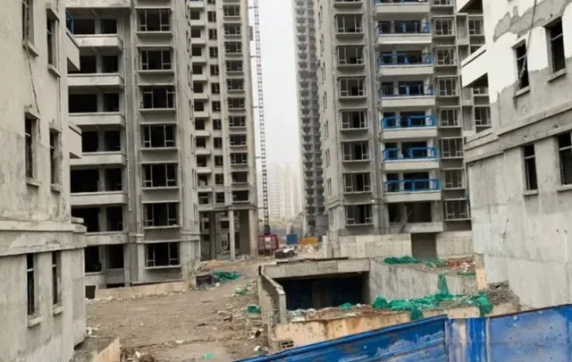 当时,很多楼栋已封顶,但外立面没有完工,园林没施工,房子是毛坯状态。