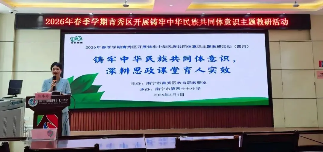 青秀区教研员张玮婷老师作《铸牢中华民族共同体意识,深耕思政课堂育人实效》专题讲座