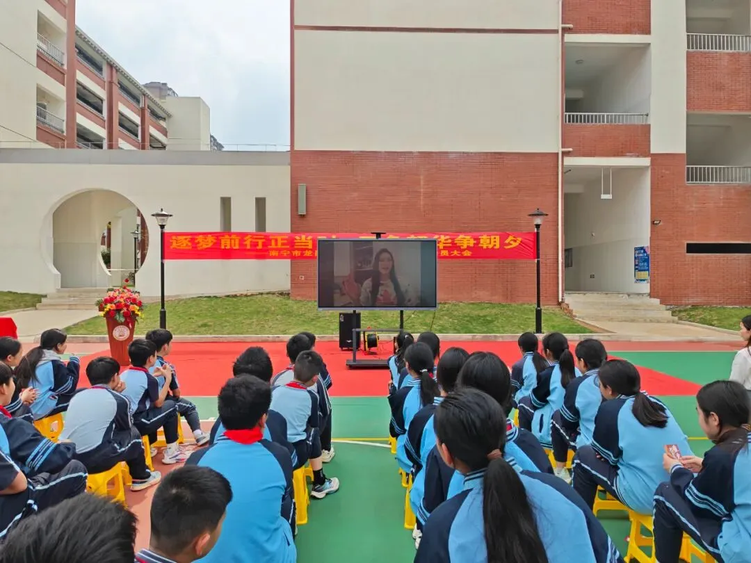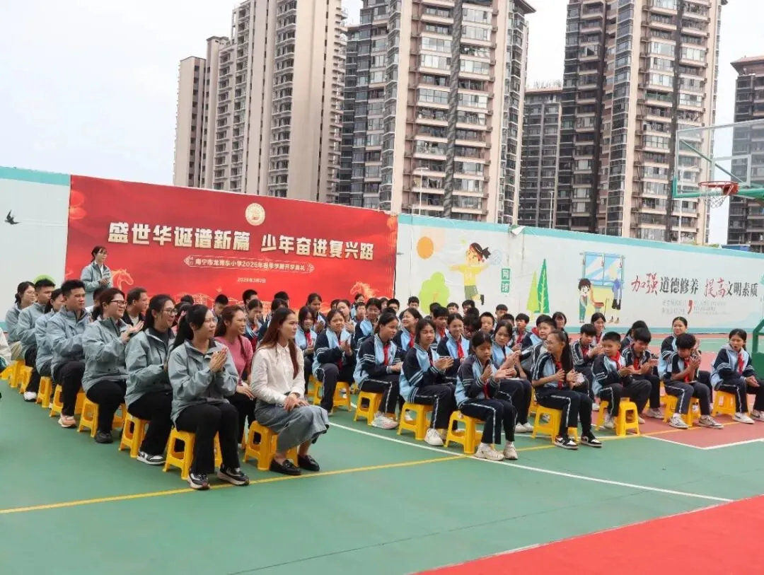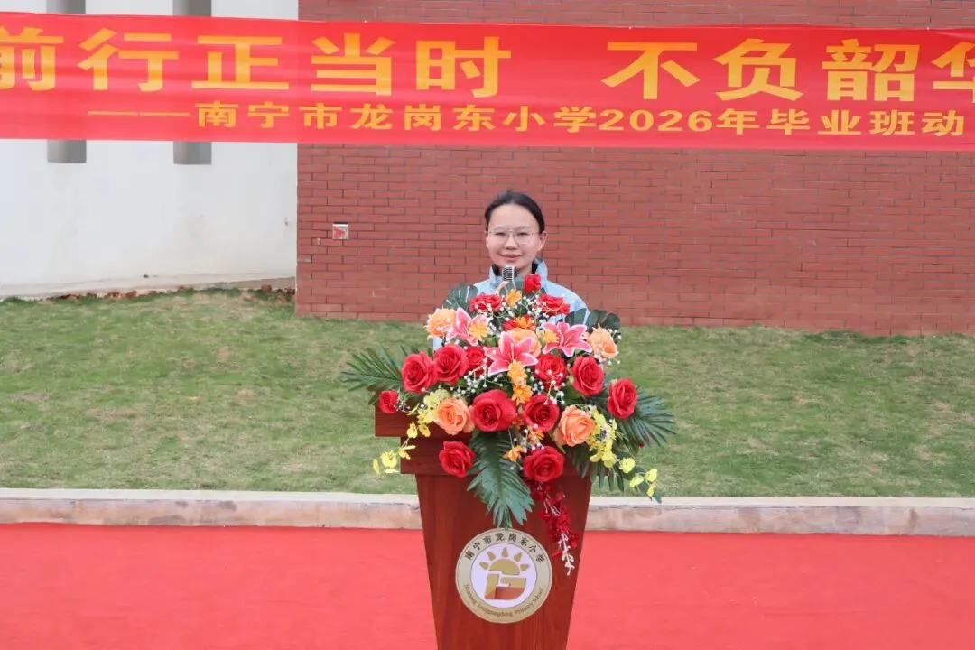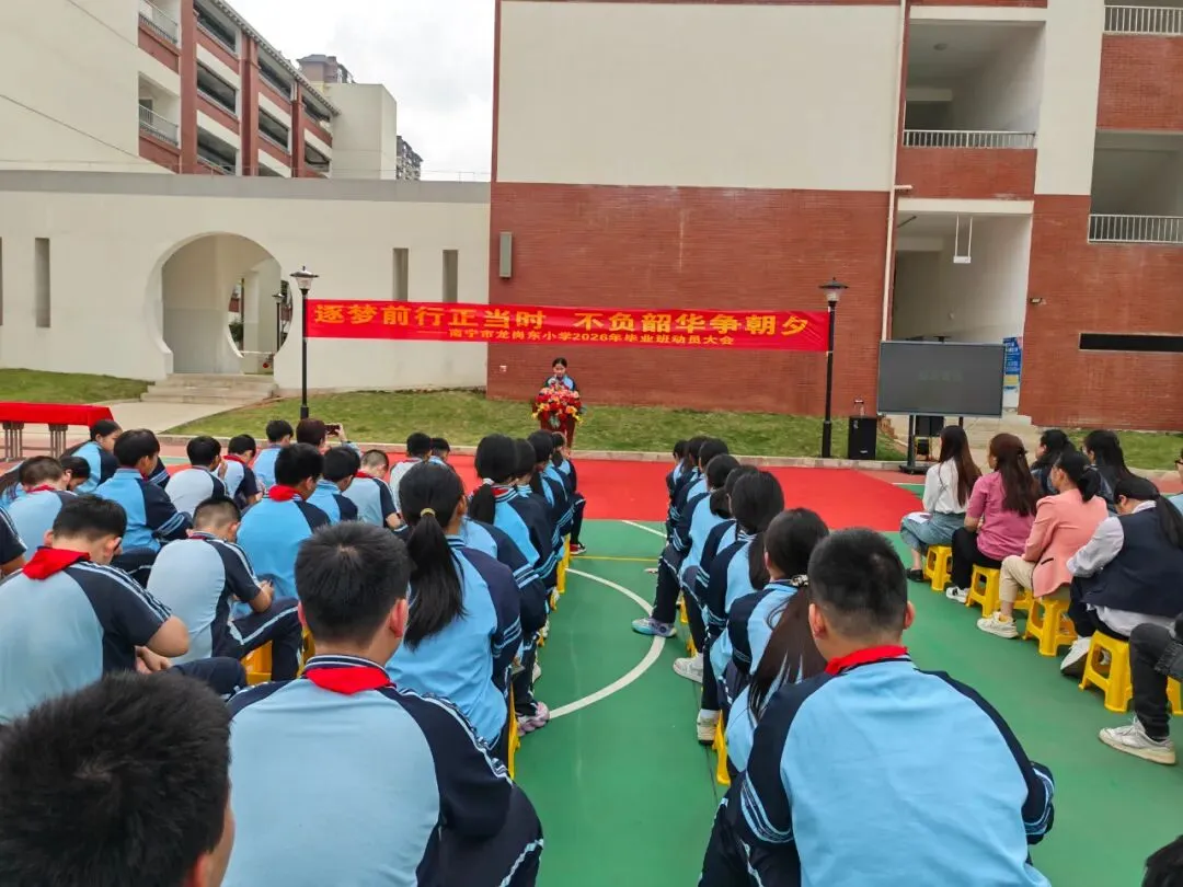 春潮涌动启新程,少年奋楫向未来。为激发毕业班学子的拼搏精神,缓解升学焦虑,凝聚家校育人合力,2026年3月23日下午,南宁市龙岗东小学在操场举行2026届毕业班动员大会,学校领导、全体师生及家长代表齐聚一堂,为即将奔赴升学挑战的学子们加油鼓劲,共赴一场逐梦之约。