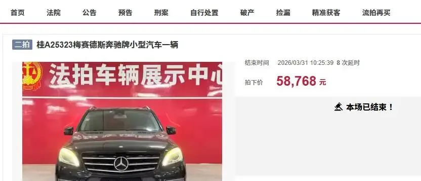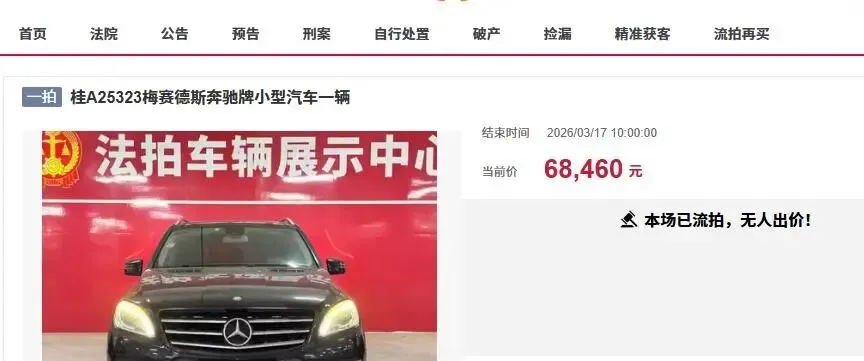 近日,在南宁市拍卖市场上,再次迎来了一辆豪华的法拍车降价拍卖,一辆车牌号为桂A25323梅赛德斯奔驰牌小型汽车被拍卖。这辆奔驰车此前进行过一次拍卖,起拍价为6.846万元,但是没有人报名竞拍而流拍了。