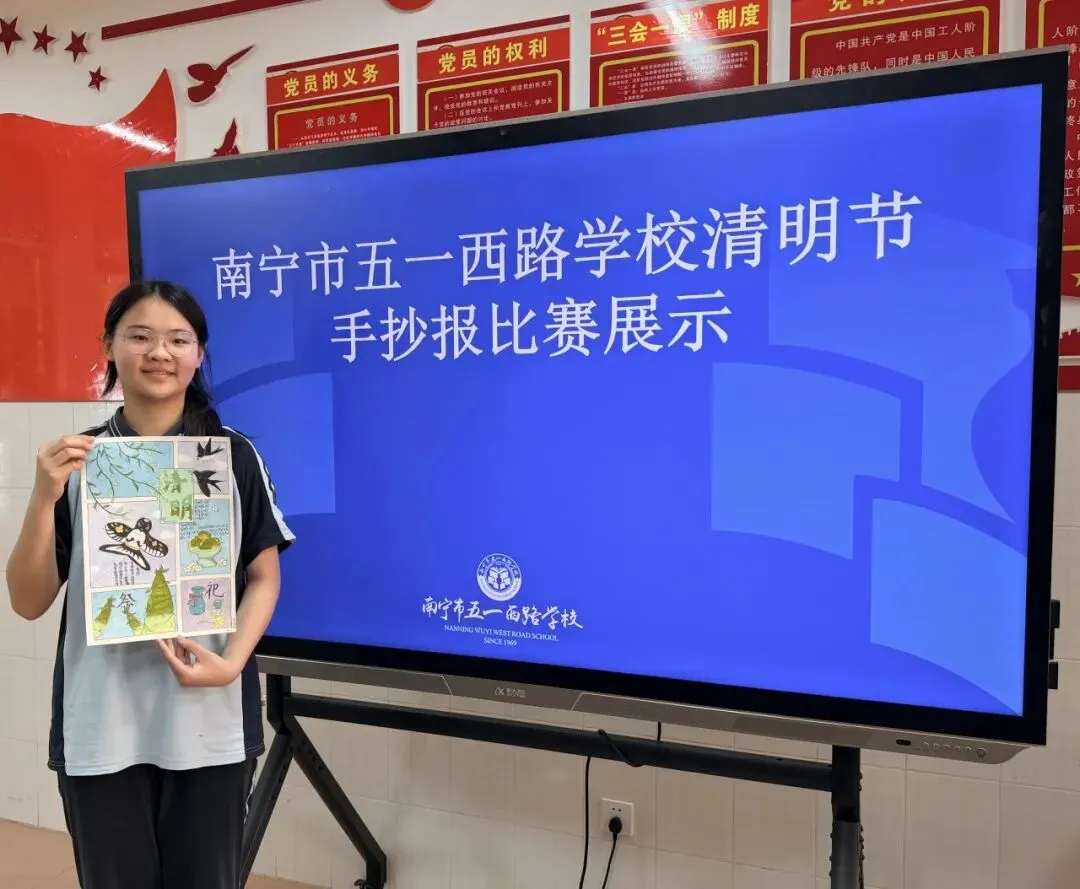 为进一步表达对先贤、先烈的缅怀之情,传承清明文化,学校开展了清明节手抄报创作活动。同学们充分发挥想象力与创造力,以笔为媒、以画传情,用手中的画笔勾勒清明的肃穆与春景的生机,用真挚的文字书写对先烈的缅怀、对传统文化的理解。一幅幅精美的手抄报主题鲜明、内容饱满,兼具思想性与艺术性:有的以“清明溯源”为主题,细致梳理清明节的历史渊源与演变脉络;有的以“缅怀先烈”为主线,描绘英雄事迹、书写崇敬之心;有的以“清明习俗”为载体,图文并茂地展现扫墓祭祖、踏青插柳、品尝青团等传统习俗;还有的将杨柳、春雨、牧童等清明意象与追思之情相结合,笔墨间满是对先贤的缅怀、对传统文化的热爱与传承。