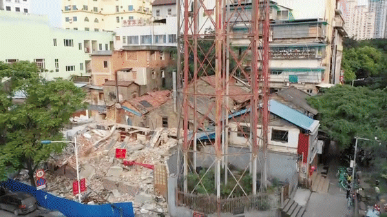 而今年4月以来,随着勾机作业,水塔脚周边的青砖老房慢慢倒下……水塔会不会被拆?