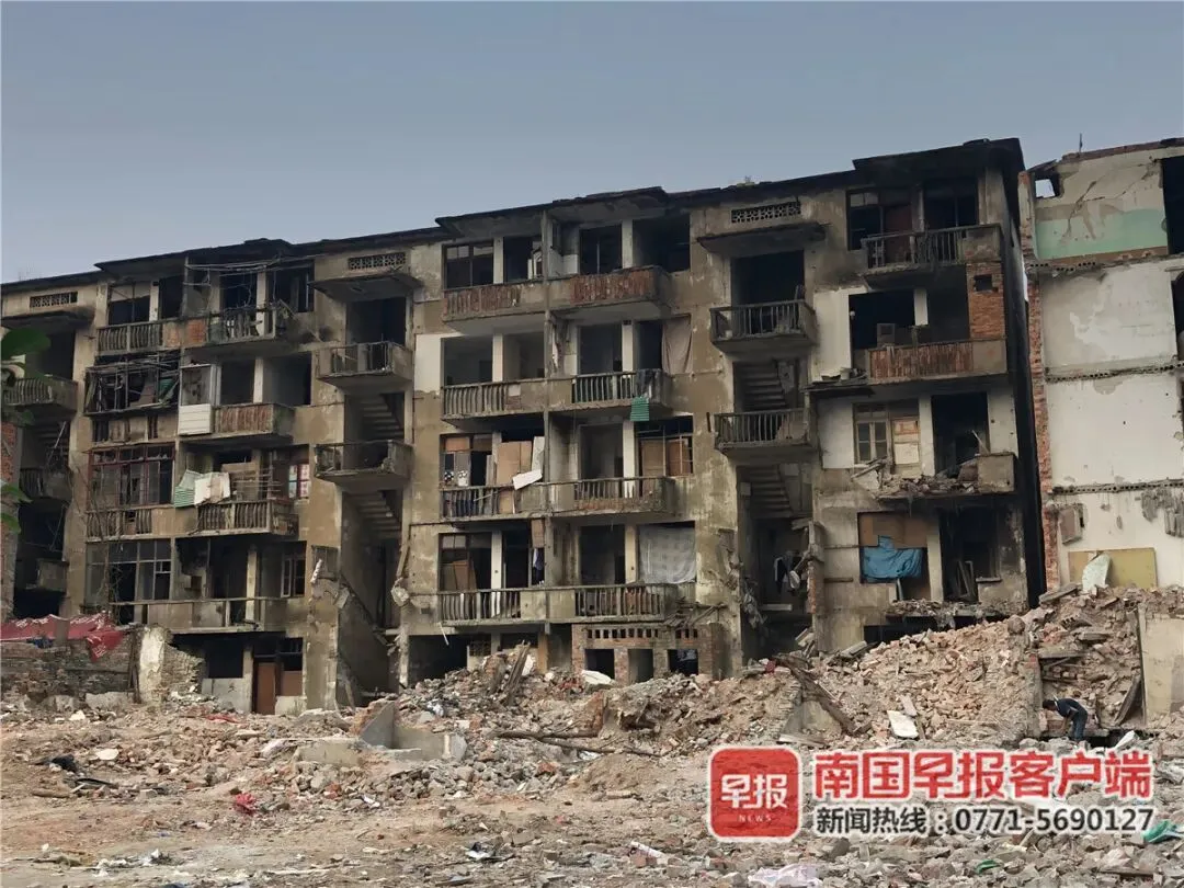 4月20日上午10时许,记者在现场看到,水塔脚位于新华路一侧的入口已经关闭,附近的老旧民房已变成残垣断壁。