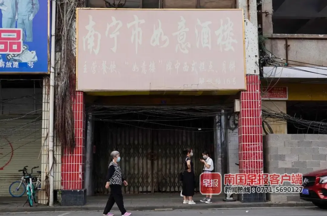 看到如意酒楼外墙上的“拆”字,酒楼经理林伯乐唏嘘不已。“1984年,我们酒楼是第一批进驻解放路的,前身是南宁市食品总公司,后来这里由办公室改成酒楼。当时,它是知名的国营饭店,最火的时候,一天有7对新人在这里摆酒席。”