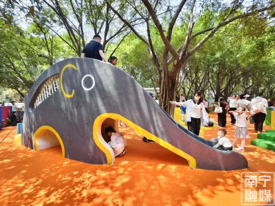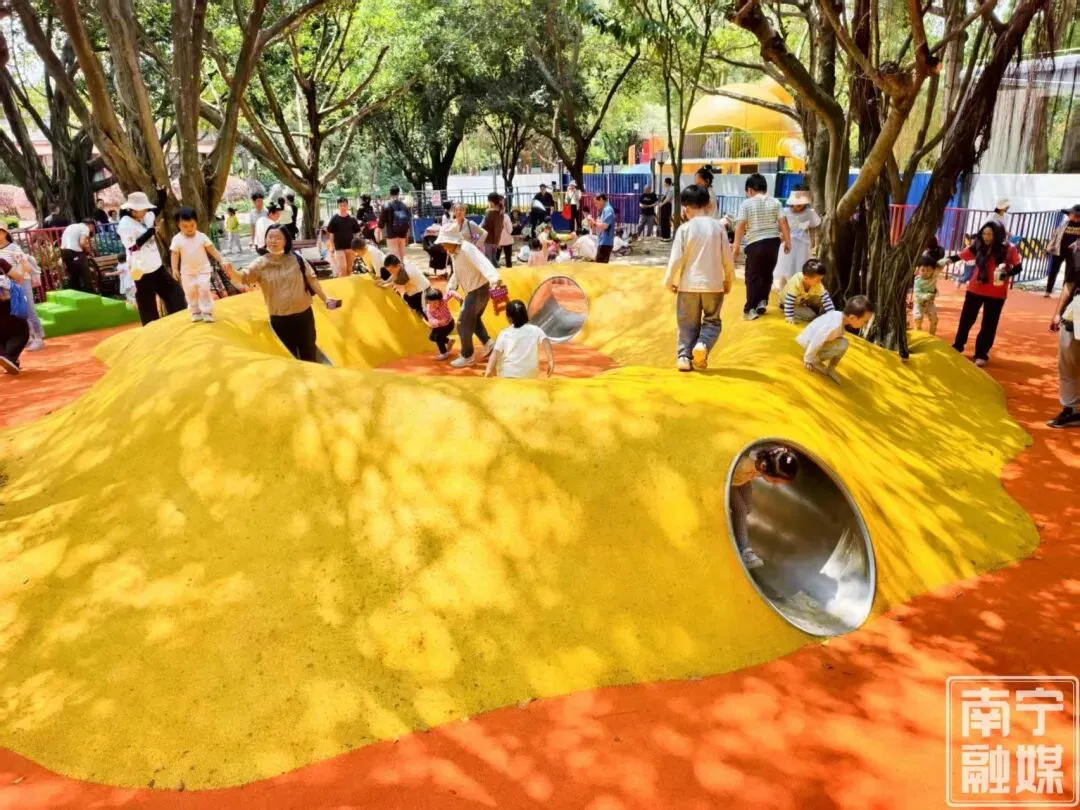 据了解,去年,南宁市金花茶公园开始提升改造,项目以“园林+体育+文化”的建设模式,因地制宜增设全年龄段友好型运动空间与设施,这片低龄段儿童设施的开放,不仅丰富了公园的服务内涵,更体现了城市精细化管理中的“儿童友好”理念。从设施选型到安全防护,再到家长看护需求的兼顾,每一处细节都透露着对市民生活的关切。