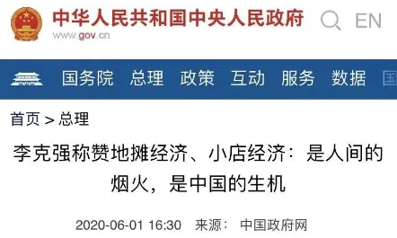 6月1日上午,国务院总理李克强在山东烟台考察时表示,地摊经济、小店经济是就业岗位的重要来源,是人间的烟火,和“高大上”一样,是中国的生机。