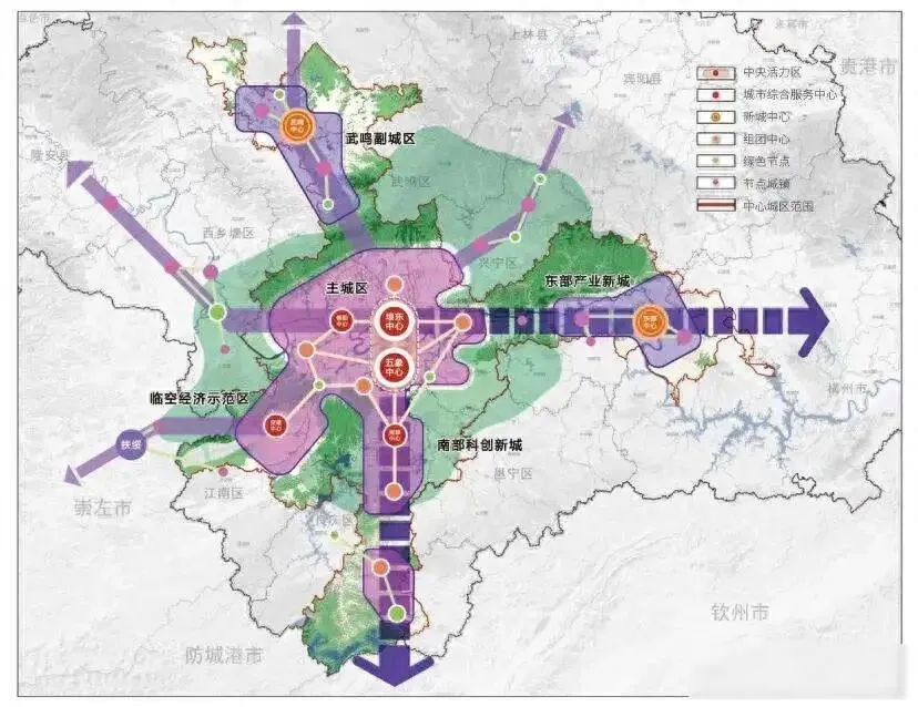 江南区盯着两港一区,亭洪路以南那片地以后可能到处都是跨境贸易公司和文体场馆,兴宁区最特别,鸡村、衡阳西路这些老地方不搞强拆,而是做微改造,保留市井味道,还把物流仓库改成别的用途,武鸣区单独划出来当副城,靠着广西—东盟经开区自己发展,不想让它变成纯睡城。