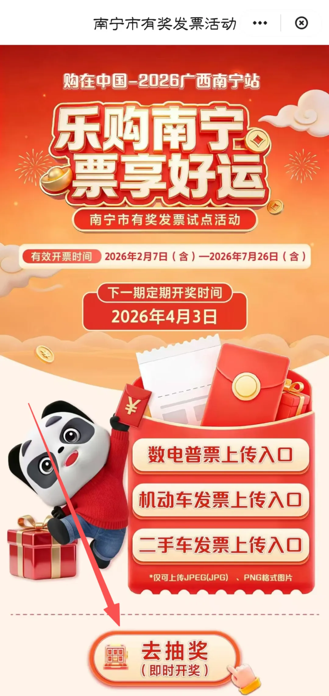 02.定期抽奖。平台将核验通过的发票信息提交抽奖平台汇总→抽奖平台经去重、核验,将通过的发票纳入抽奖池→抽奖平台在公证机构的公证下进行抽奖→公示中奖名单,为期3个自然日→公示结束后,国家税务总局南宁市税务局对发票状态进行复核→各活动平台向通过公示、复核的消费者发放奖金,原则上公示结束后10个工作日内完成奖金发放。