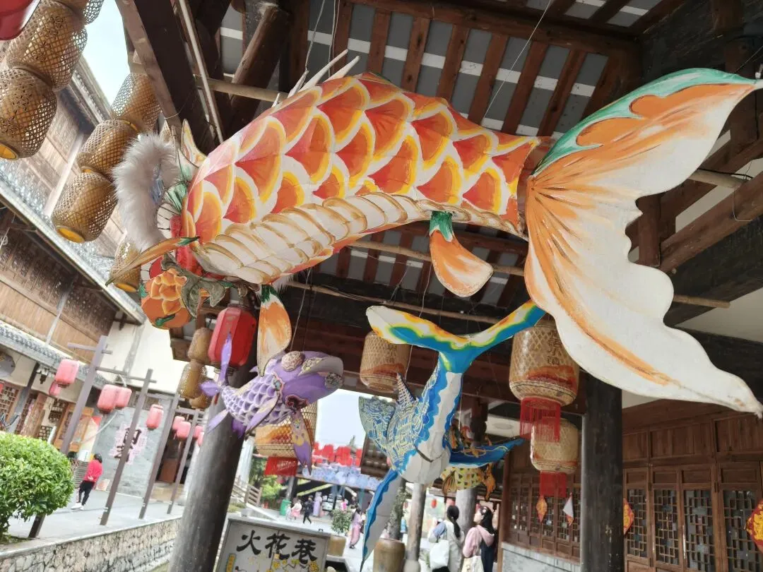 红灯笼点缀其间,风里藏着草木的清香与民族的温柔,