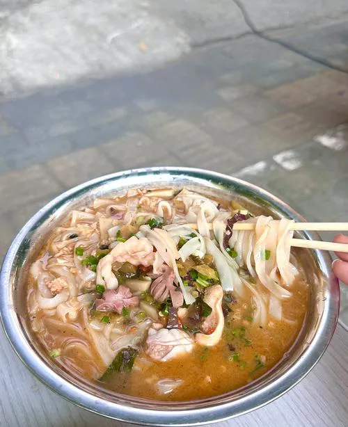 真正厉害的老友粉店,不会把所有料都堆满,而是恰到好处,汤头要酸辣但不抢,让你吃到最后一口还想喝,粉要爽滑但有嚼劲,夹起来不会断也不会黏成一坨,配菜的量刚好够你每一口都能尝到不同层次,这种平衡感不是配方能教出来的,得靠日复一日的手感,所以那些开了二三十年的老店,它们不仅仅是在卖粉,更像是在用味道守住这座城市的记忆。