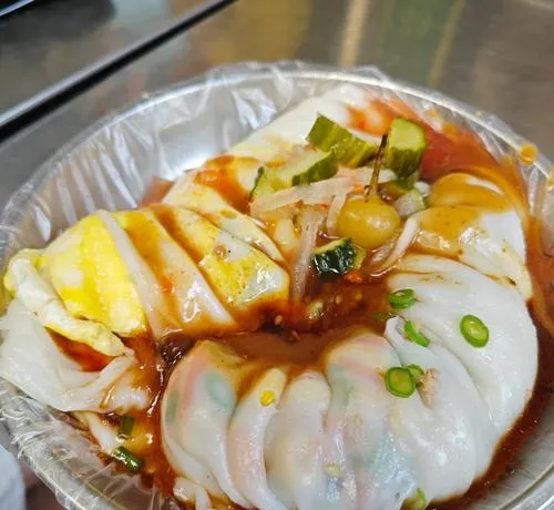 粉饺这个东西,皮子是用米浆蒸出来的,薄得透光但韧性十足,里面包的馅料通常是肉末、木耳、香菇、虾米,咬一口下去,皮子的软糯和馅料的鲜香在嘴里同时炸开,再蘸点特制的酱料,那种满足感不是靠堆料堆出来的,而是每种食材都恰好发挥了自己该有的作用,不多不少。卷筒粉也是同样的逻辑,米浆摊成薄饼、卷上肉末和配菜、淋上酱汁,看起来跟肠粉有点像,但口感完全不同,南宁的卷筒粉更注重米香和酱料的融合,不是那种滑溜溜的质感,而是有点嚼劲、有点扎实的满足感。