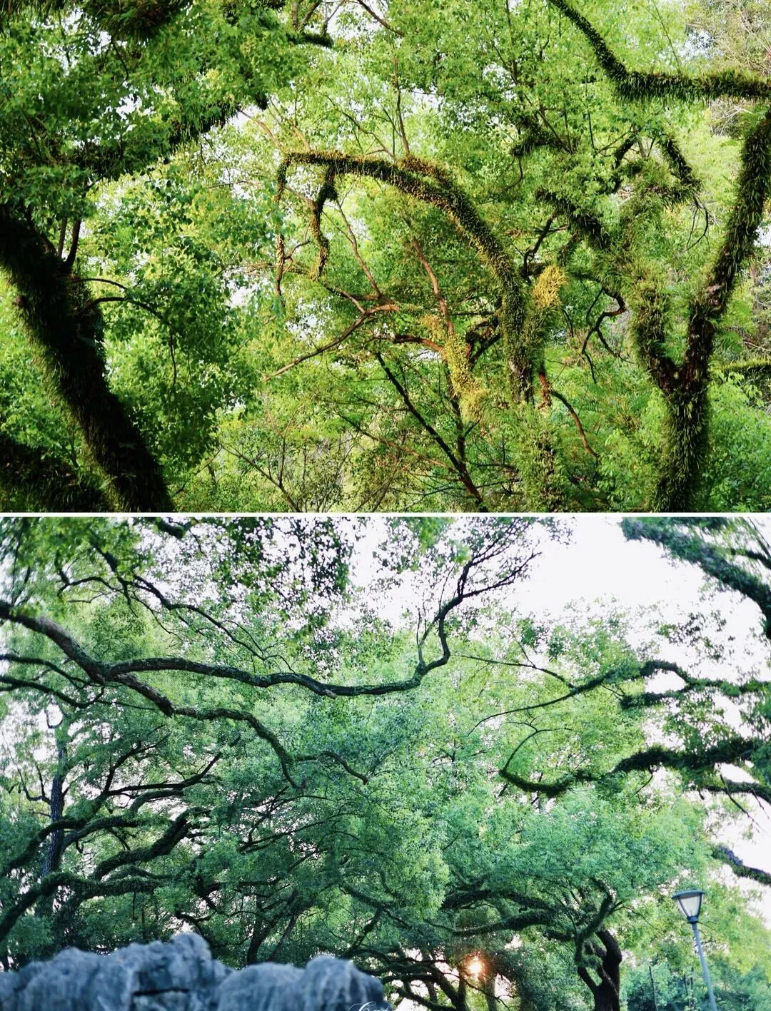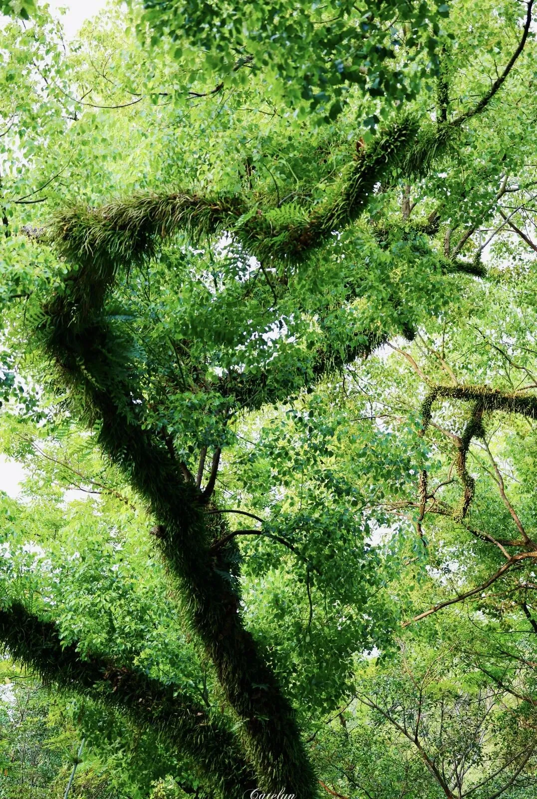 “毛茸茸”的香樟树!树干上好像披了一层毛毯,步道蜿蜒在林间,每一步都踩在自然的韵律上。阳光透过树叶的缝隙,洒下斑驳的光影,像是精灵在低语。耳边是鸟鸣与溪流的合奏,心灵也随之沉静下来。在这里,时间仿佛放慢了脚步,让人忘却尘世的烦恼,只想沉浸在这片绿色的怀抱中。