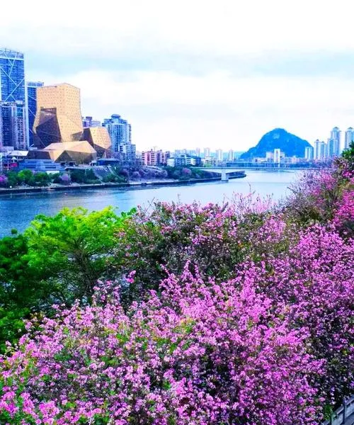 柳州的春天美在哪,不是某个景点特别出挑,是整个城市在春天里呈现出来的那股劲儿,你走在街上,抬头是开满紫荆花的行道树,低头是柳江穿城而过带来的水汽和绿意,转个弯可能就撞见一片开得正盛的洋紫荆,这种美不需要你专门去找,它就在你日常走路吃饭的路上,这才是最厉害的地方,因为很多旅游城市的美是需要你特意去看的,柳州的美是你想躲都躲不掉的。
