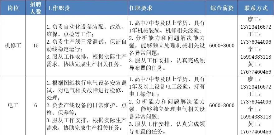 月薪5000-6000元,广西粤通管业集团有限公司招聘机修工等岗位