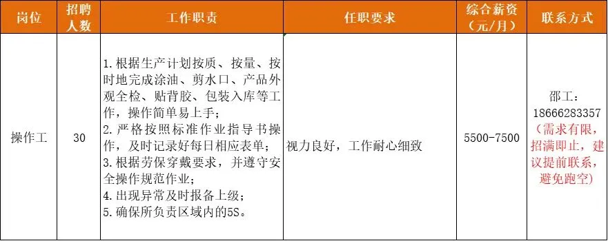 1.应聘说明:符合条件的求职者,携身份证及简历(如有),前往招聘现场面试;需求有限,招满即止。