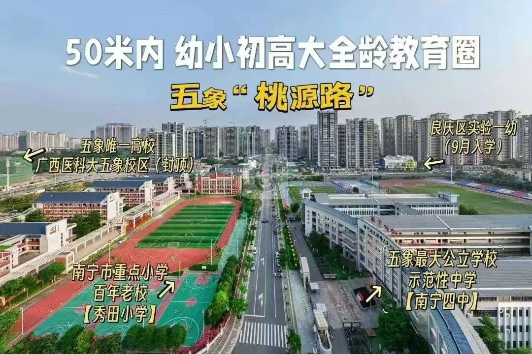✅ 医疗配套:紧邻广西医科大学附属五象新区医院(规划三甲),周边良庆区人民医院、妇幼保健院环伺,全方位守护家人健康。