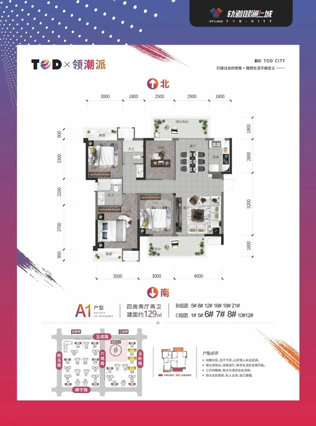 🔹 129㎡3+1房:空间舒展,动静分区,适合三口之家、二孩家庭,实用性拉满。