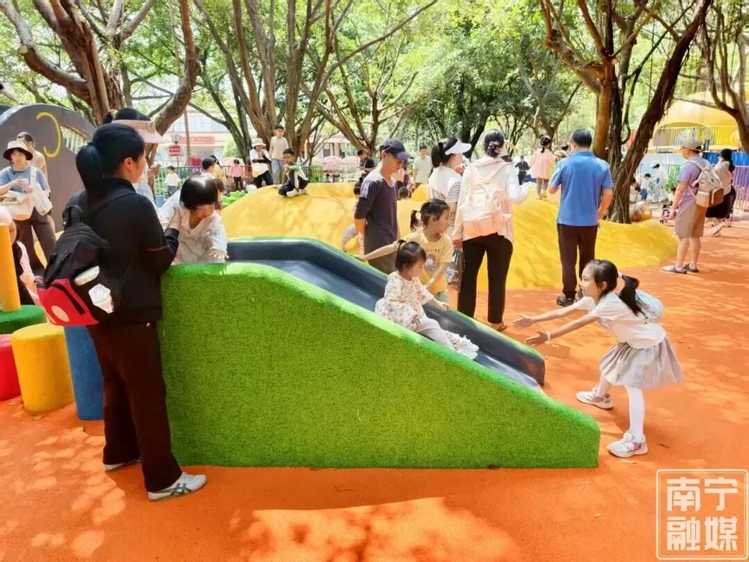 据了解,去年,南宁市金花茶公园开始提升改造,项目以“园林+体育+文化”的建设模式,因地制宜增设全年龄段友好型运动空间与设施,这片低龄段儿童设施的开放,不仅丰富了公园的服务内涵,更体现了城市精细化管理中的“儿童友好”理念。从设施选型到安全防护,再到家长看护需求的兼顾,每一处细节都透露着对市民生活的关切。