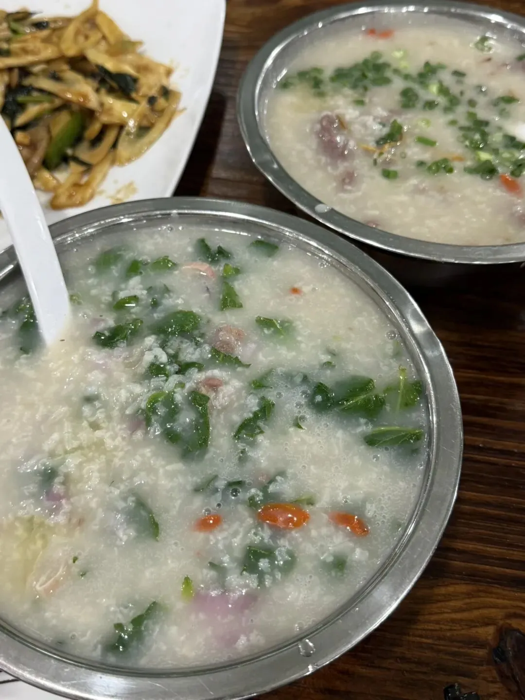 1、先去佛山吃顿美味的牛肉粥。嗯,比广州的好吃!还吃了美味的春笋和饺子。