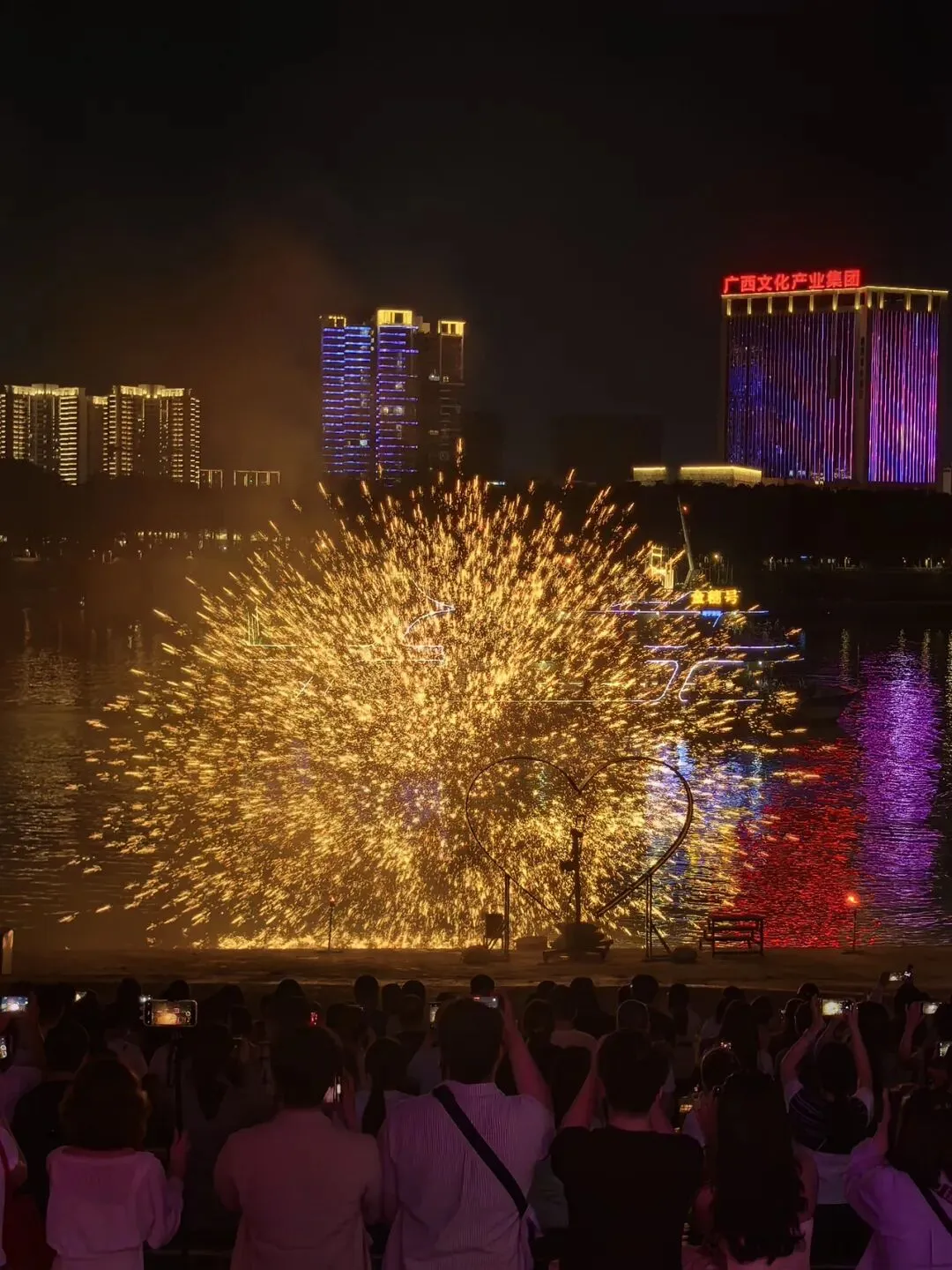 8、晚上去看南宁火秀,刚开始以及中间演员互动的环节让人有一种在泰国看秀的感觉:纹身肌肉光膀男和穿着性感背心短裙的小姐姐表演火舞和火棍。最让人震撼的是打铁花和火壶,不过进场比较晚,下次在前排肯定更震撼。