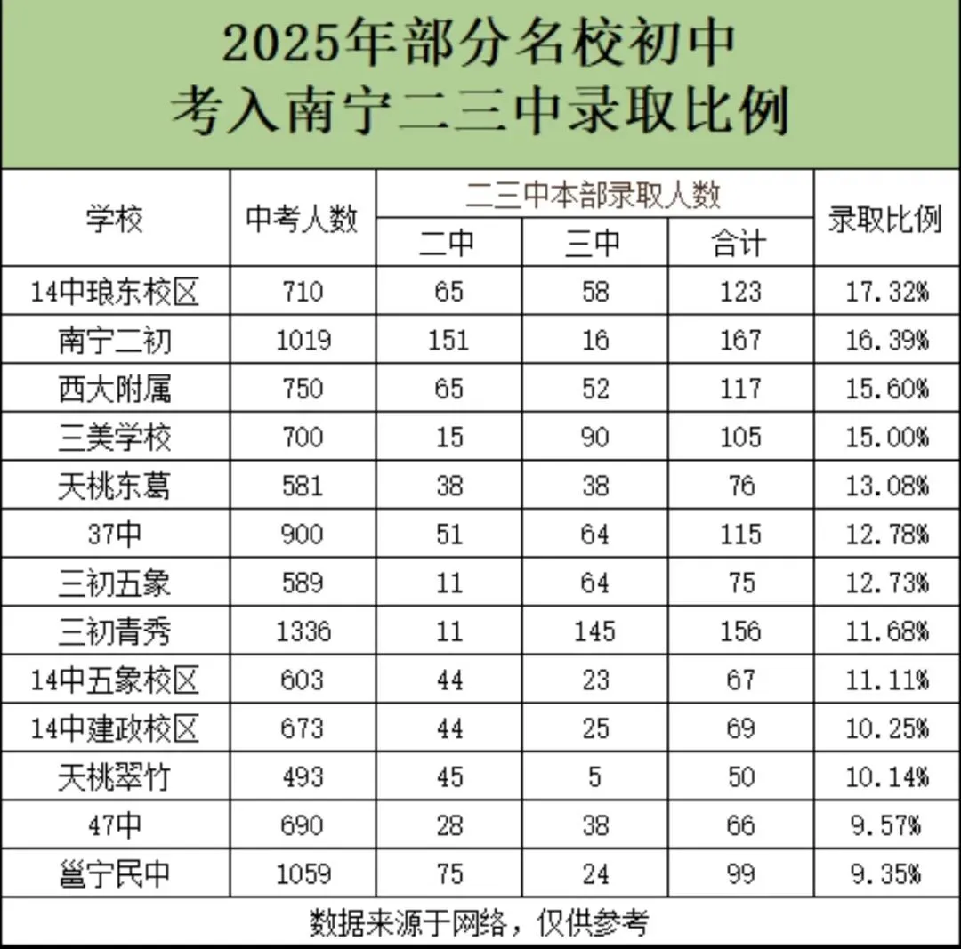 2. 录取比例:14中琅东、南宁二初优势明显