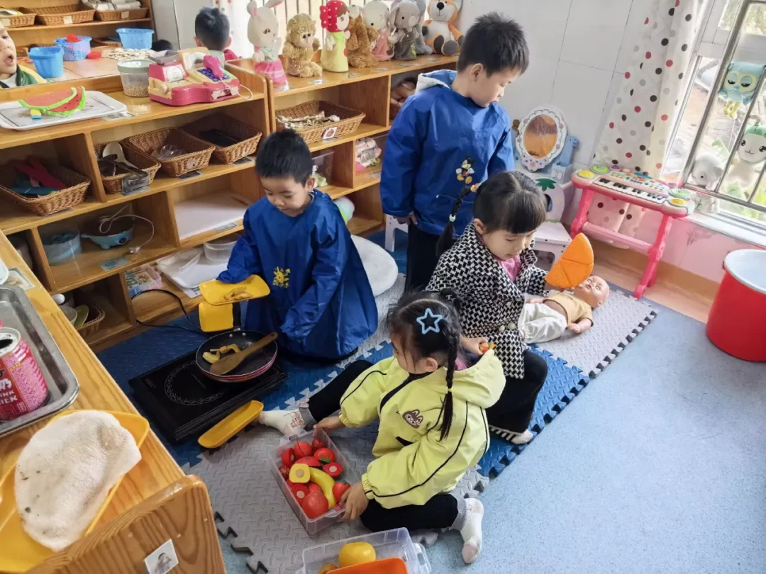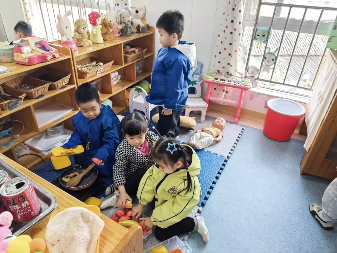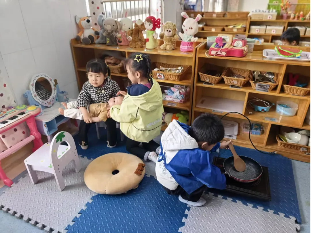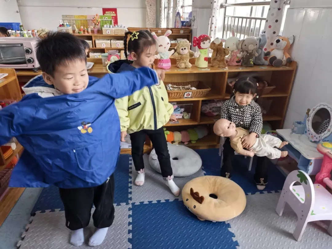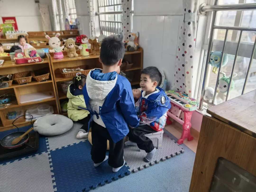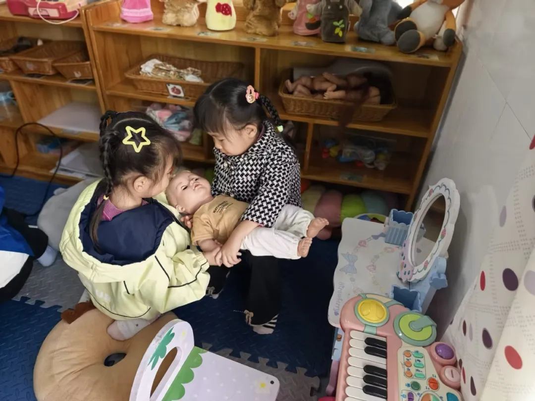 区域游戏时间,小杰、煊煊、悦悦进入娃娃家。悦悦抱娃娃:“我当妈妈,照顾宝宝。”小杰拿小围裙:“我当爸爸,做饭。”煊煊轻声说:“我也想当妈妈。”悦悦没说话,小杰对煊煊说:“那你当姐姐吧,姐姐也可以招待客人。”煊煊点头同意。