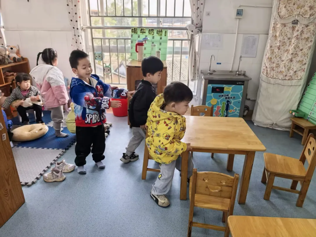 游戏结束音乐响起,教师提醒幼儿:“娃娃家的游戏要结束啦,小客人要回家咯。”奕奕、诚城和小乔站起来:“我们要回家了,再见!”悦悦挥挥手:“再见,下次再来我家玩!”煊煊也大声说:“欢迎下次再来做客!”