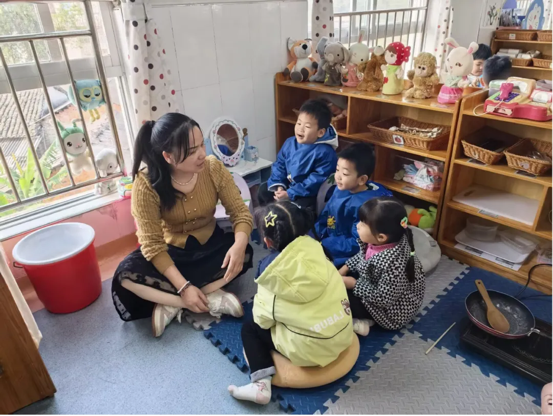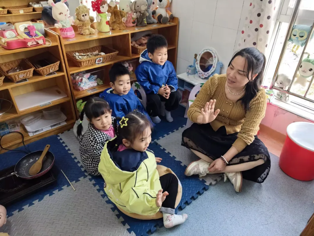 教师提问:“假期里家里来客人,爸爸妈妈会先说什么呀?”煊煊想了想,对濠濠说:“请进。”教师继续引导:“客人进来了,可以请客人做什么?”小杰放下锅铲,搬来小椅子:“请坐!”濠濠开心坐下:“谢谢。”悦悦和煊煊也露出笑容。
