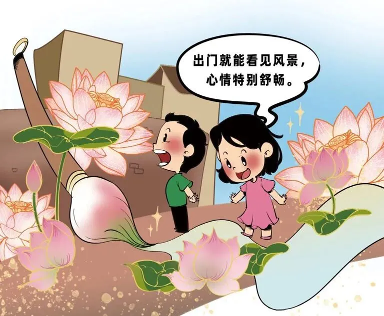 在西乡塘区的华兴里,老街的烟火气中多了一份浪漫。艺术家在地面彩绘了一池荷花,荷叶脉络清晰,花朵仿佛摇曳生姿。居民雷金寿看着家门口的变化,笑意盈盈:“现在出门像逛公园,街坊邻居来喝茶、遛鸟,心情都变好了。”这种“推门即景”的改变,让老街有了“公园范”。家风家训标语巧妙镶嵌在彩绘中,与糯米饭的香气、游客的相机快门声交织。