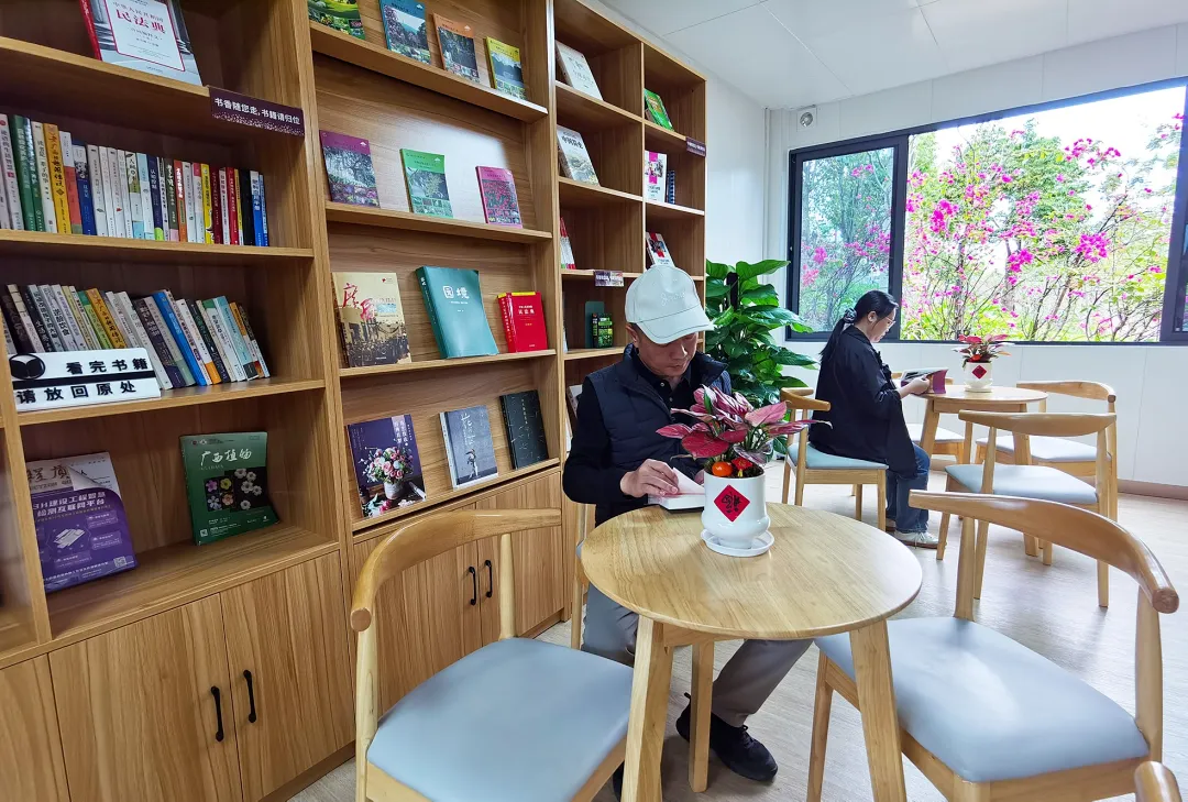 清晨的邕江如绿色丝带,青秀山段的沿岸公园里,晨练市民与房车游客汇聚。他们的焦点是掩映在绿荫中的“小木屋”——升级版便民服务站。这里打破刻板印象,不仅是问路歇脚处,更是“复合型”精神港湾。饮水充电、导览咨询之余,书架上整齐排列着植物科普、花卉鉴赏书籍,游客接水间隙可随手取阅,生态知识普及变得自然而然。